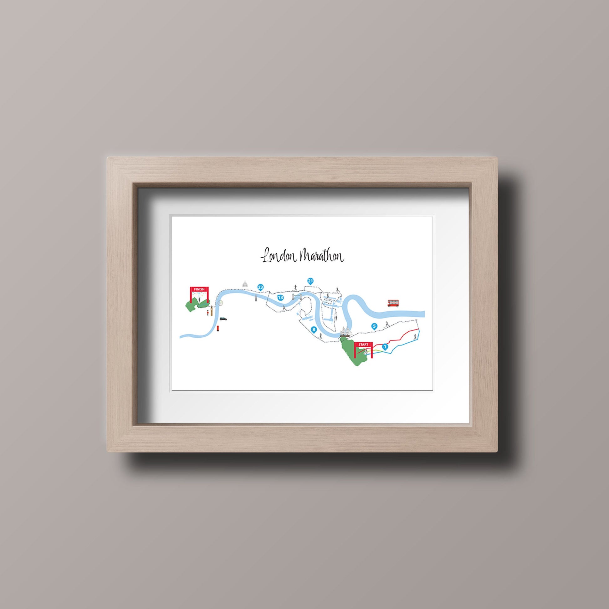 The London Marathon is one of the most famous marathons in the world, and only 0.01% runners complete a marathon each year, so why not show off your amazing achievement and let everyone see? The map includes the route and direction of the marathon, with iconic landmarks passed during the 26.2 miles This artwork would make a wonderful keepsake gift for someone special for any occasion.