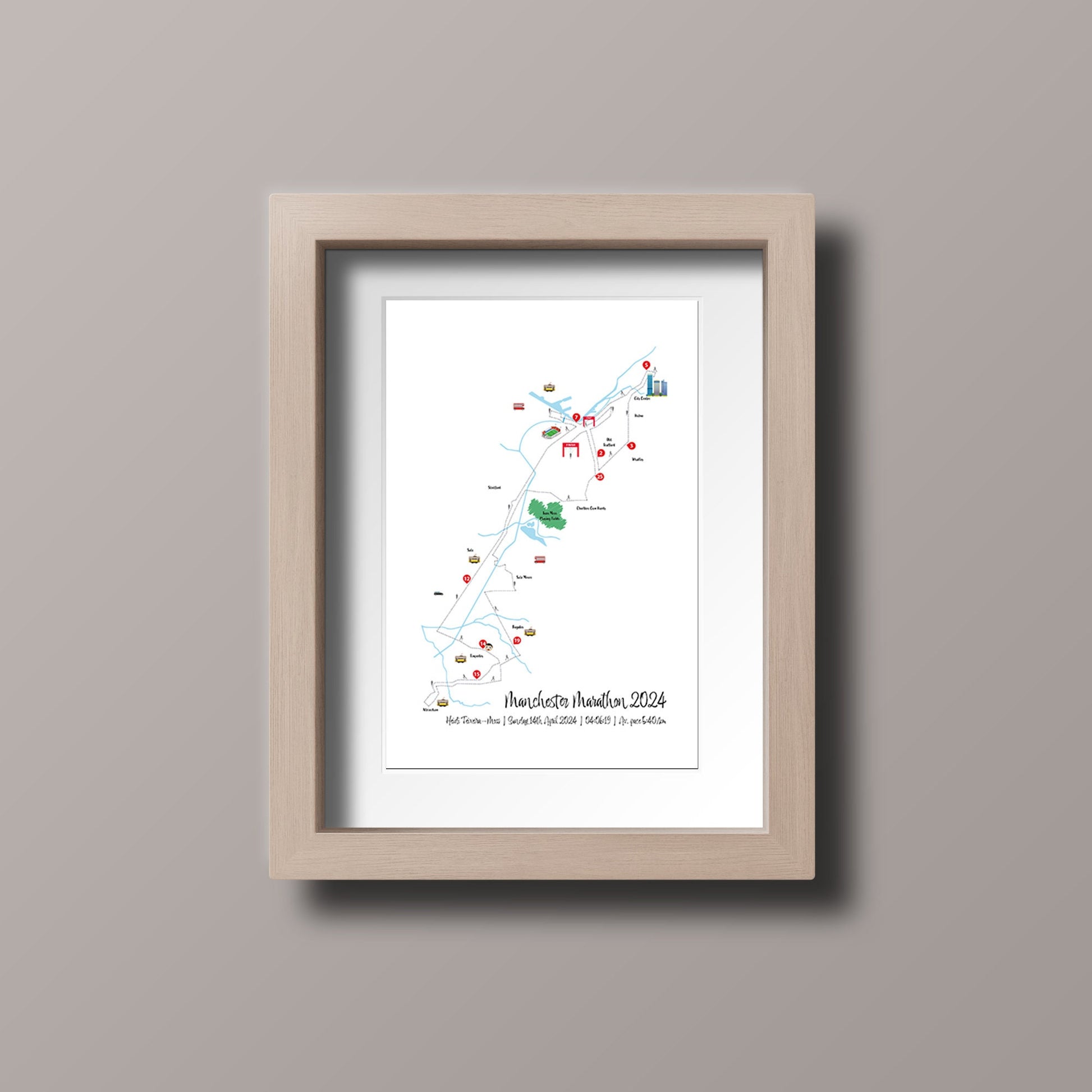 Show off your achievement with a personalised Manchester Marathon Route print: