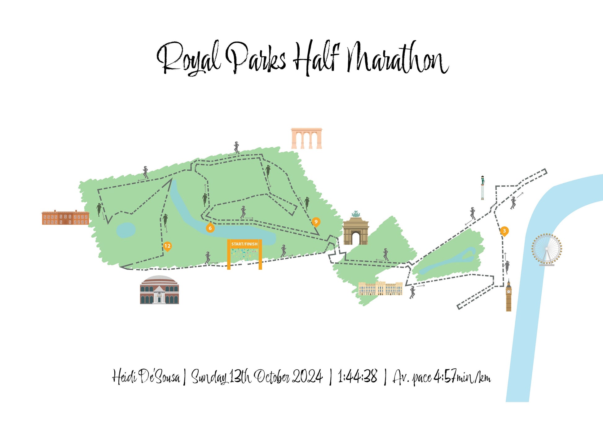 Personalised Royal Parks Half Marathon Route Map Print Memorabilia